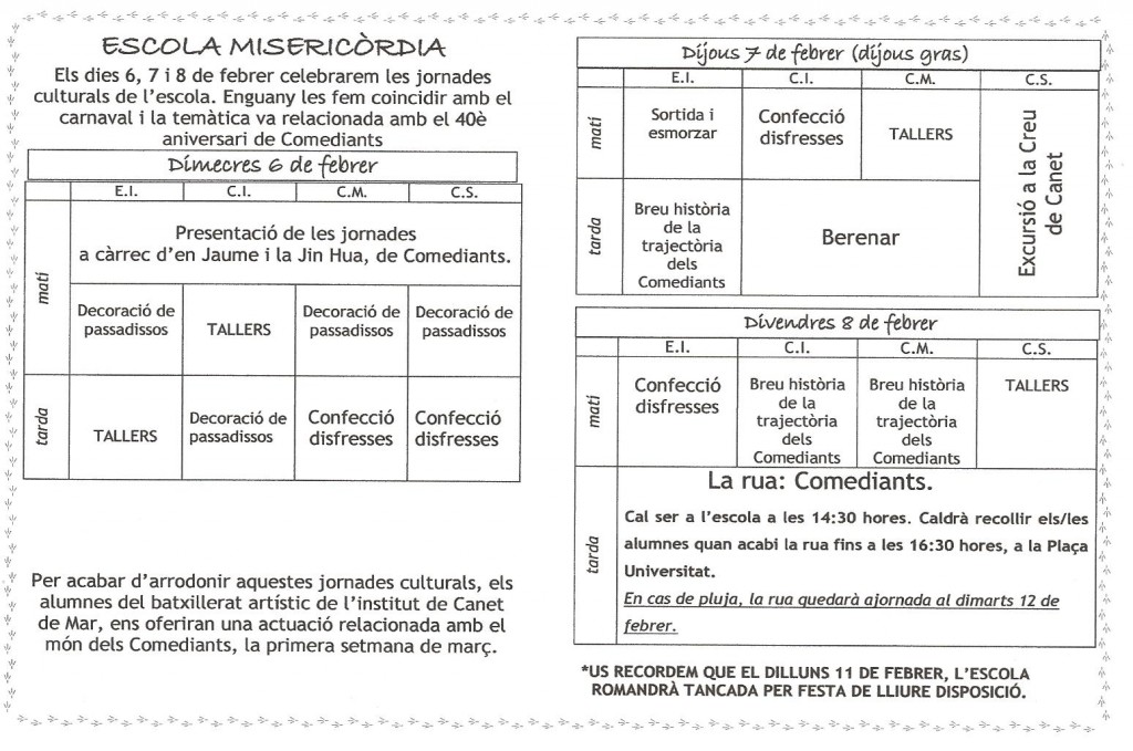 Aquí us deixem el programa d’activitats, sisplau mireu-lo amb atenció i anoteu les dades importants a la vostre agenda.