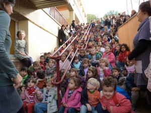 A mig matí, van venir a visitar-nos, en nom del pare Nöel, els pares de l’AMPA que ens van portar un suculent esmorzar atapeït de sucs, xocolata i coca. A última hora, i com a cloenda del trimestre, ens vam reunir tots, alumnes, professors i personal del centre per cantar tots plegats al porxo la nadala d’acomiadament. Bon Nadal i Feliç Any Nou!!