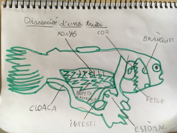 A classe tenim peixos, i hem volgut conèixer-los millor. Els hem observat: com viuen, com neden, què mengen… Per veure’ls per dins hem comprat truites!