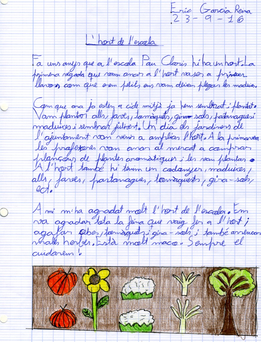 Els nens i nenes de quart hem escrit les nostres impressions sobre l’hort de l’escola; records, feines i moments que compartim tots plegats.