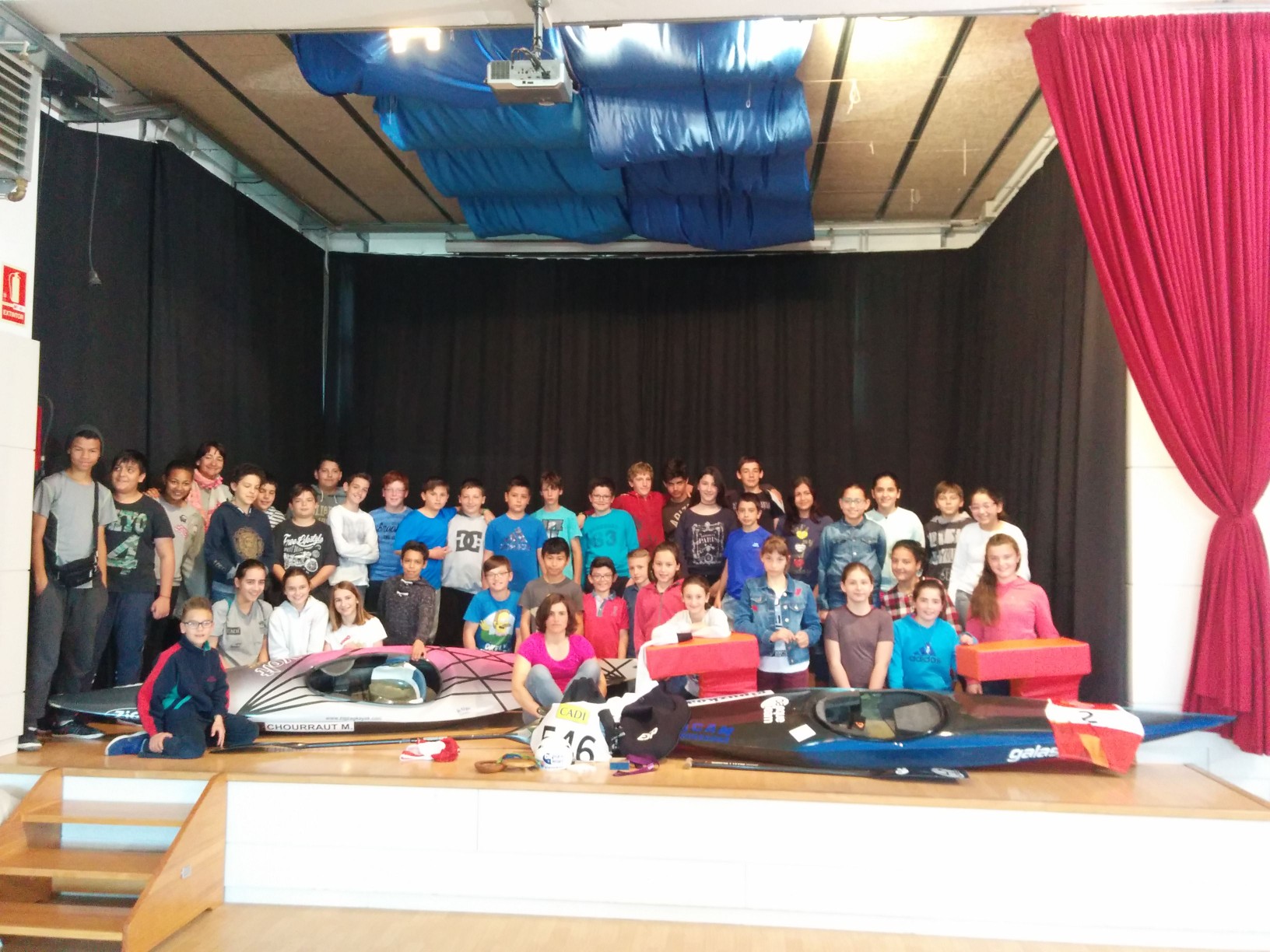 Aquest divendres 7 d’abril del 2017, ha vingut la Mayalen Chourraut a la nostra escola. Ens ha vingut a fer una xerrada sobre el piragüisme. Ens ha començat explicant que la seva feina es competir i alhora divertir-se. Ens ha dit que de cada país, només hi va una noia de la seva modalitat, als Jocs Olímpics. En els Jocs Olímpics de Londres i en els de Rio de Janeiro hi va anar ella, en representació d’Espanya. En els jocs de Rio de Janeiro va guanyar la medalla d’or i en els de Londres la medalla de bronze.