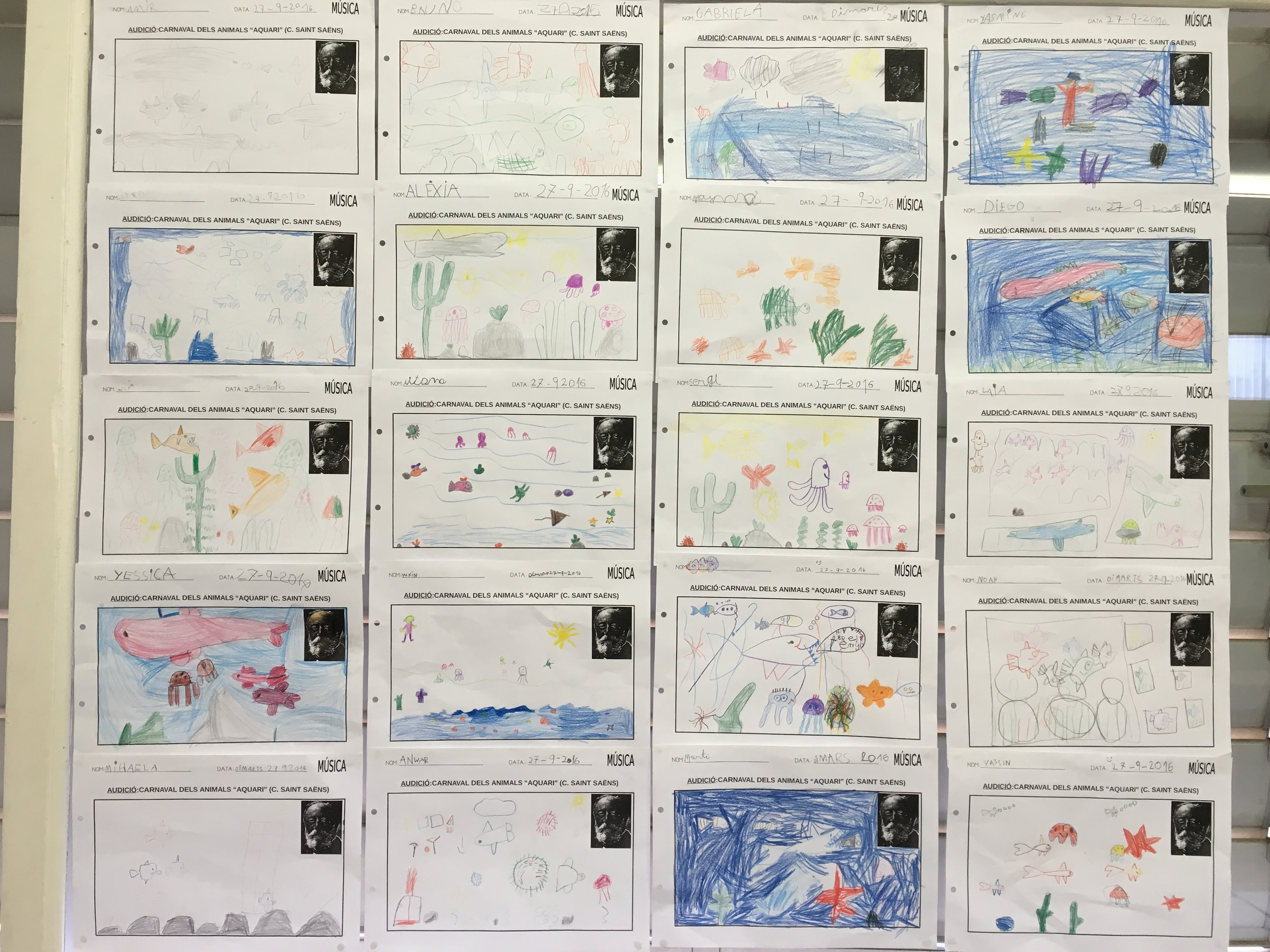 Avui hem dibuixat el que ens suggeria l’audició del divendres, “Aquarium” de Camille Saint Saëns.