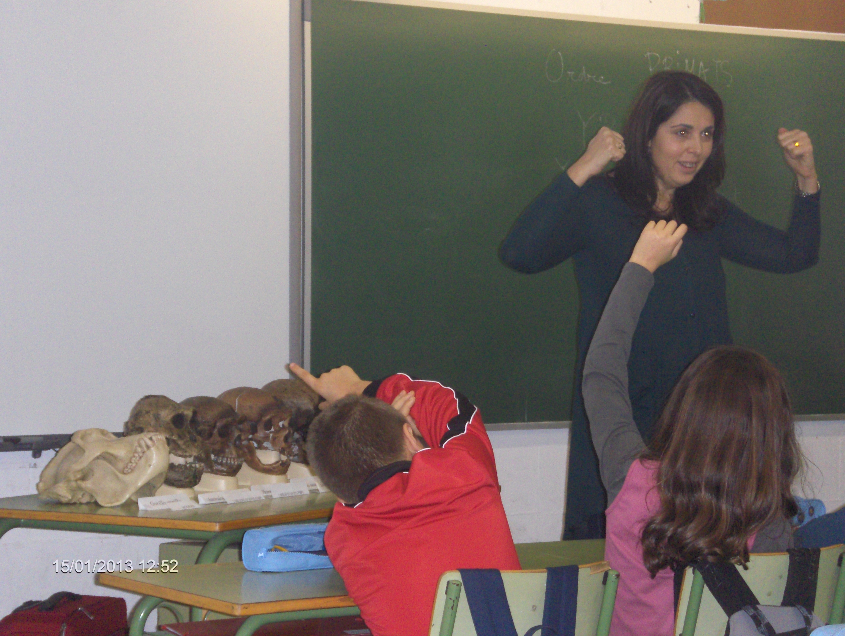 Avui 15 de gener, els nois i noies de 5è curs han gaudit i après amb les explicacions que ens ha fet Esther Esteban, mare de l’escola, sobre l’evolució humana a través de l’observació i diferenciació de diferents cranis. Els alumnes han pogut veure i tocar cranis de goril·la, australopithecus, homo erectus, homo del Neanderthal i homo sapiens i, s’ho han passat d’allò més bé.