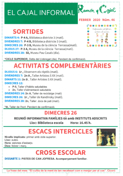Pel que fa a la nostra escola en concret cal que sabeu que: