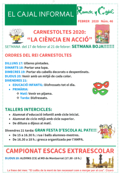 – Totes les activitats, sortides i colònies previstes per les properes tres setmanes queden ajornades. Intentarem reprogramar-les de cara al tercer trimestre.
