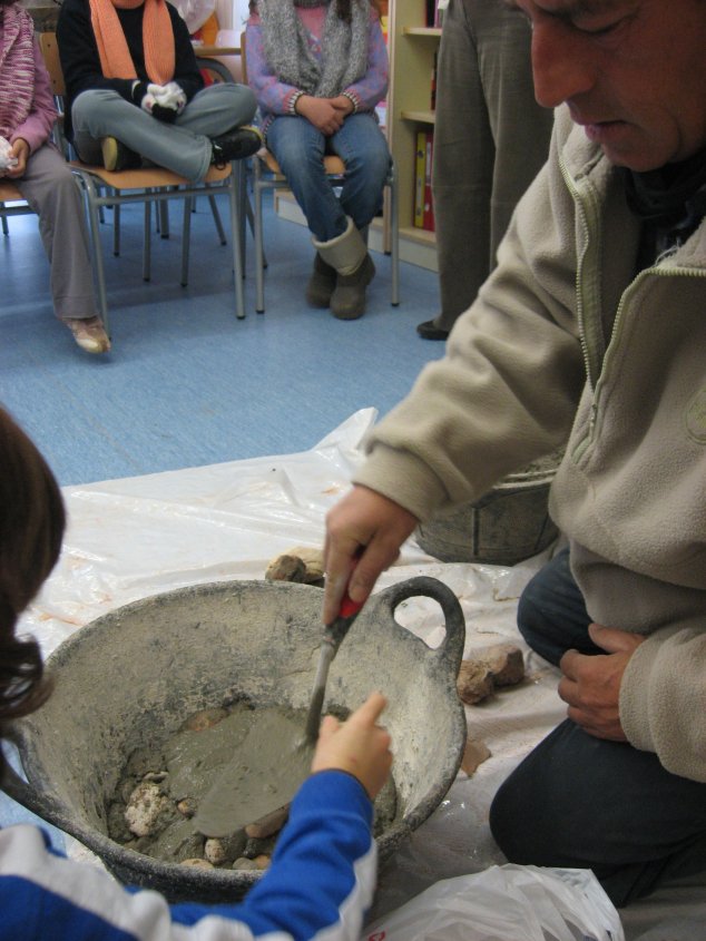 Van posar aigua, ciment, sorra i pudingues i bretxes i ho vam remenar tot.