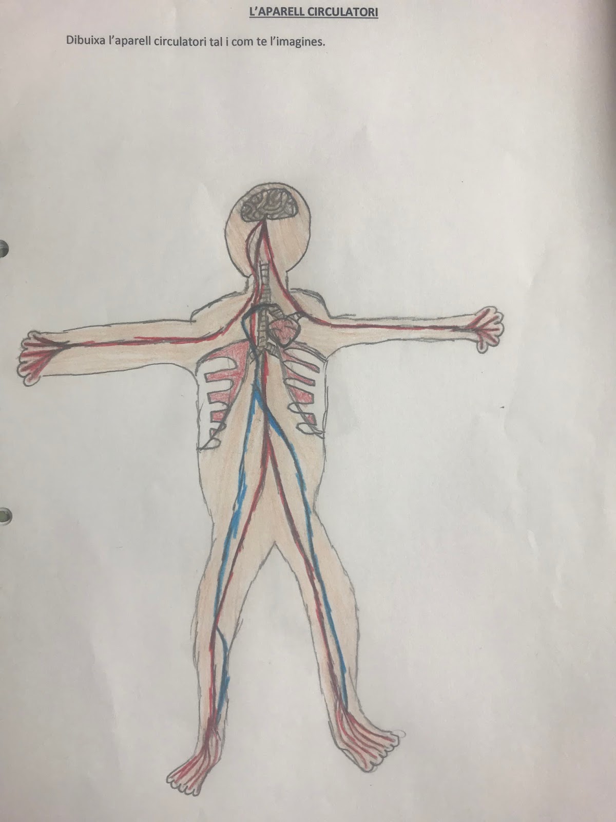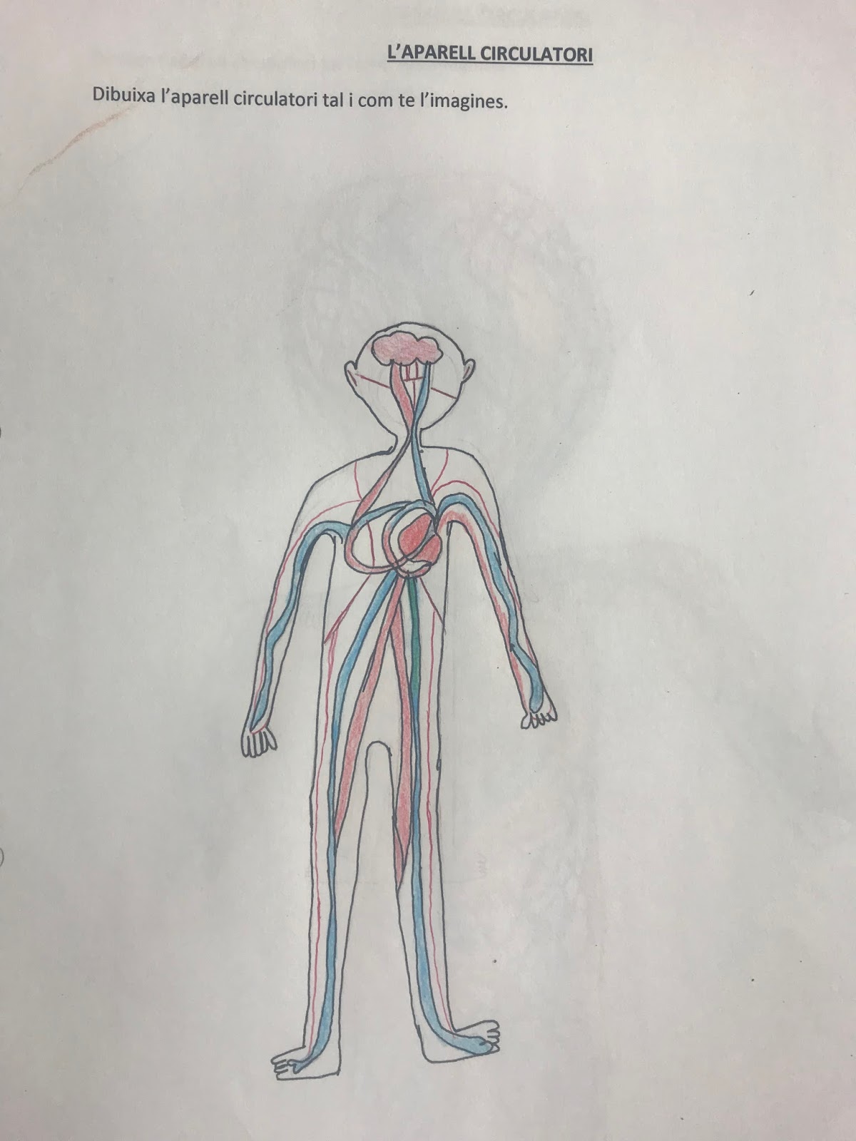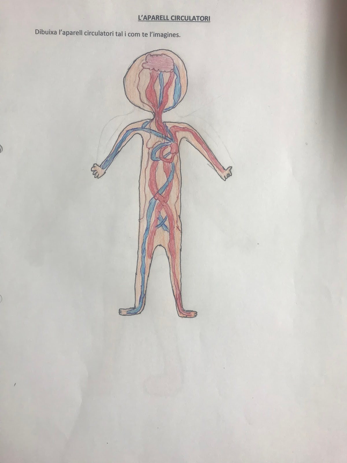 Com ens trobem a l’inici del nostre projecte i encara els alumnes no tenen molta idea de com és l’aparell circulatori. Realitzem una activitat on els alumnes s’han de imaginar com és el nostre aparell circulatori per dins.