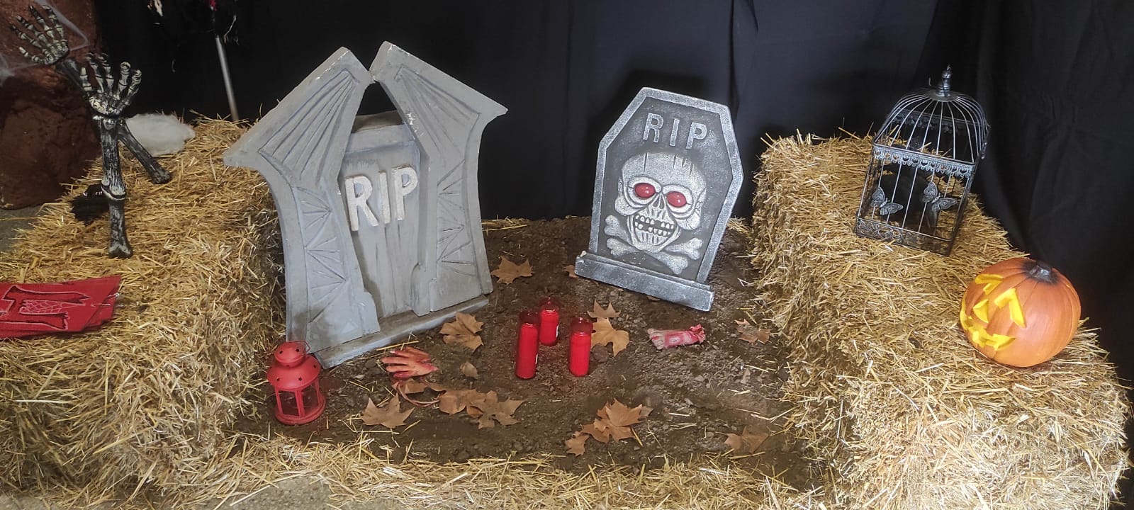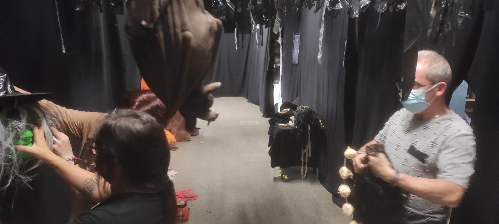 Mares i pares de l’escola ens han ajudat aquest any a muntar tot el decorat en un passatge reduït però molt terrorífic.