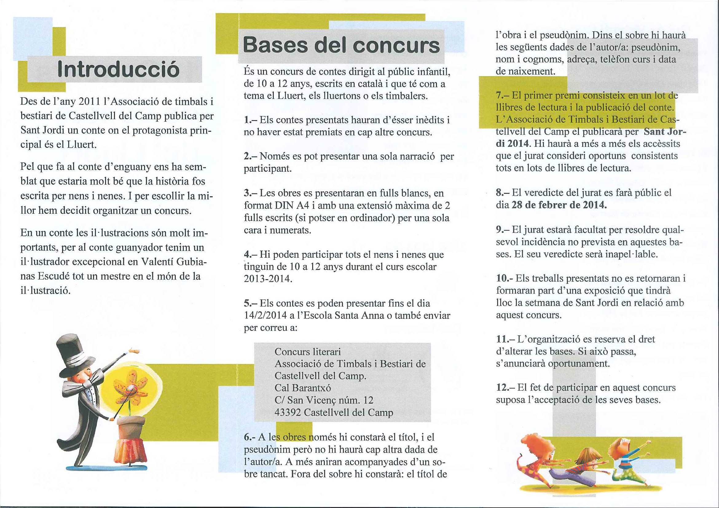 Els alumnes de Cicle Superior han participat en el 1r. CONCURS LITERARI DE CASTELLVELL DEL CAMP organitzat per l’Associació de Timbals i Bestiari de Castellvell del Camp.
