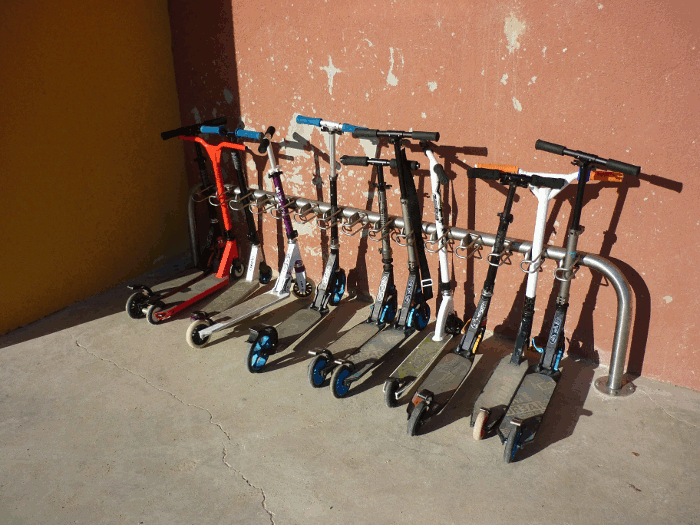 Aquesta setmana l’escola ha estrenat el suport per aparcar patinets que ens ha intal·lat al pati la Brigada de l’Ajuntament.