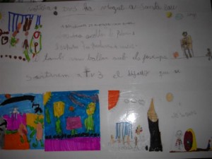 El dimarts, dia 25 d’octubre, TV3 va convidar-nos a fer de públic en el programa DIVENDRES, de l’Espartac i la Pilarin Bayés. A la tarda vam sortir de l’escola i vam anar a la plaça del Mirador, on hi havia instal·lat el plató. Ens van fer seure en uns coixins i catifes i ens van demanar que estiguéssim molt quiets i callats, molta estona. La veritat és que va ser un xic difícil! Però vam poder veure les càmeres, els focus, i vam escoltar les històries i contes que ens va explicar la Pilarin que, mentrestant, no parava de fer dibuixos dels personatges dels contes. Al final ens els va regalar. Moltes gràcies!!!