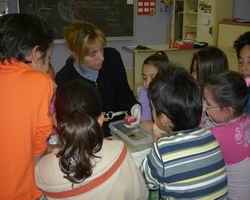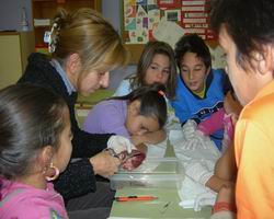 Quan va tallar el cor va sortir una miqueta de sang.( Isabel )Vam tallar el cor, la mestra ens va ensenyar “ els dos tubs” per on surt la sang neta i la sang bruta.( Sisco )Am veure per on sortia la sang, per un tub.( Miguela )Treballàvem l’aparell circulatori.( Amador)El que més m’ha agradat es quan va tallar el cor, els dos tubs, la ratlla blanca i quan el vaig agafar.( Diego)Quan la mestra va partir el cor per la meitat hi havia unes ratlletes creuades.( Manuel)També vam trobar “ una coseta fina”, un coàgul, que el vam treure amb unes pinces.( Enrique)