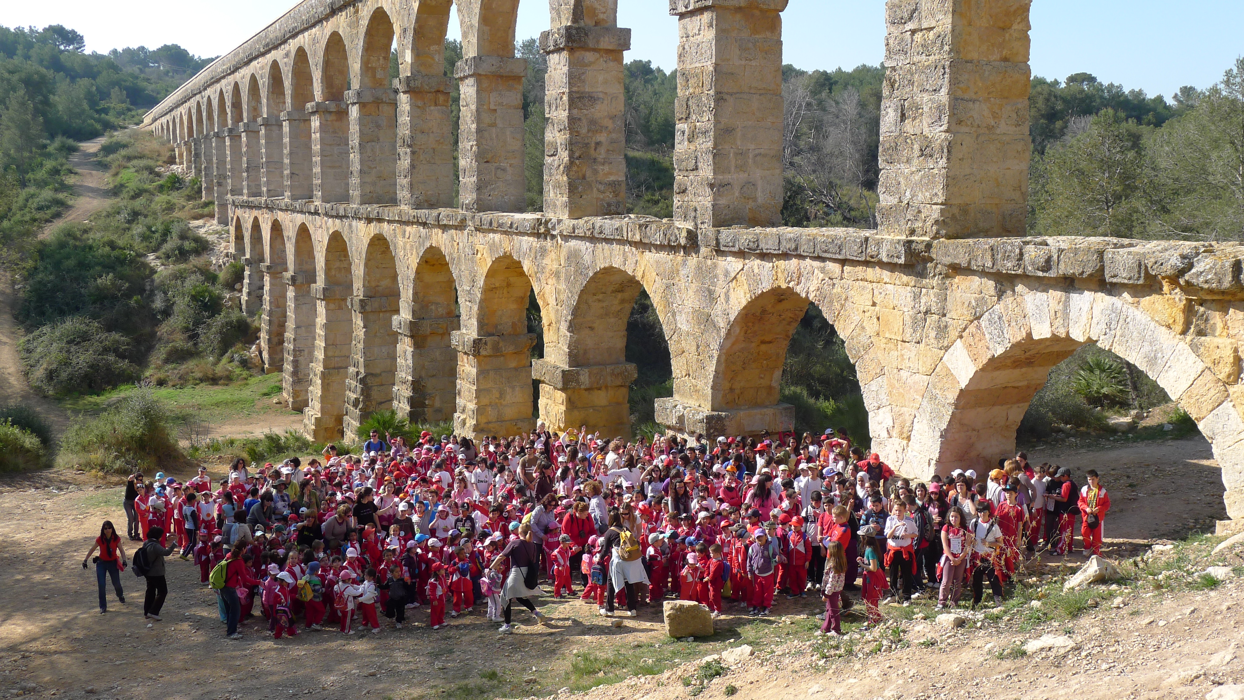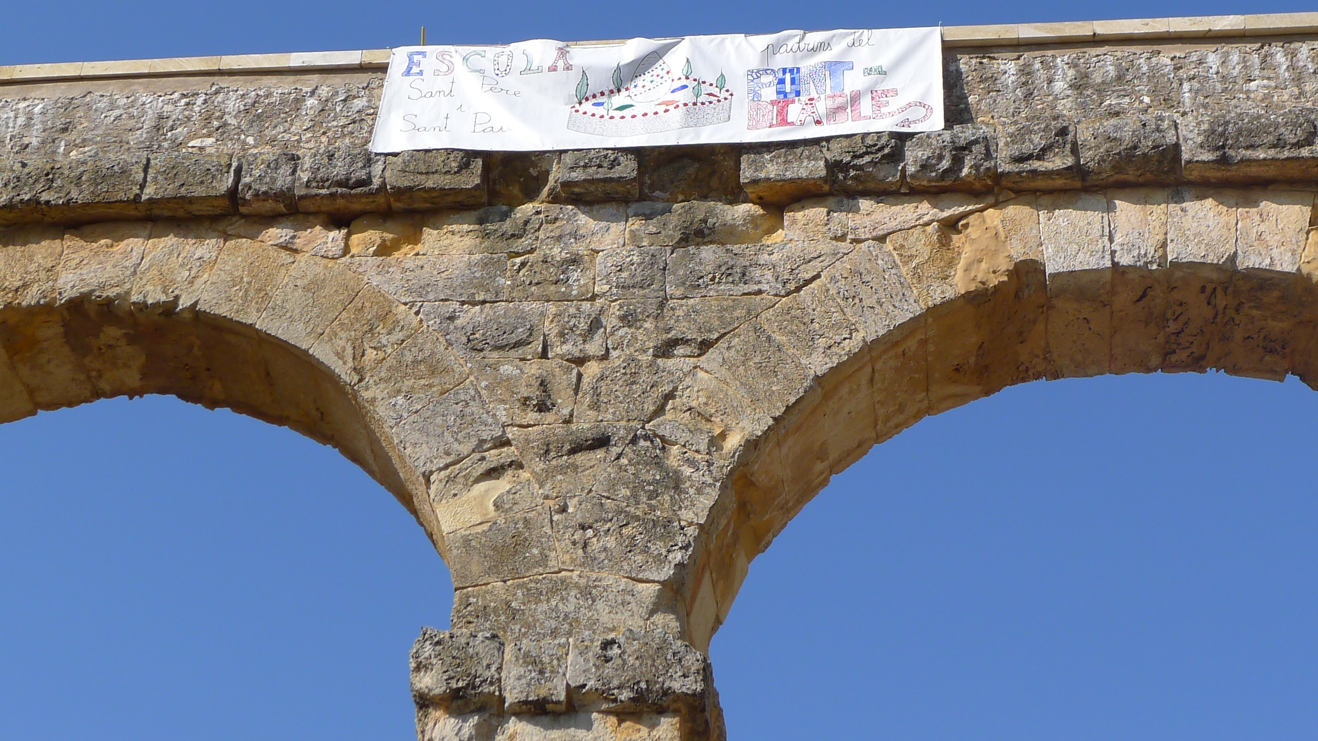 Avui, divendres, 30 de març, 502 membres de l’Escola Sant Pere i Sant Pau -460 nens i nenes, des de P3 fins a 6è, i 42 mestres- s’han desplaçat fins a l’Aqüeducte de les Ferreres, per lliurar la mona de Pàsqua al fillol de l’escola. L’activitat, té el seu orígen l’any 2005 en què el centre es va acollir al projecte municipal, Adopta un Monument, i va decidir d’apadrinar aquest monument romà popularment conegut com a PONT DEL DIABLE.