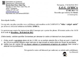 CAMPANYA ”roba i calçat usats” per a S.O.S. ÀFRICA.