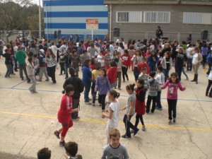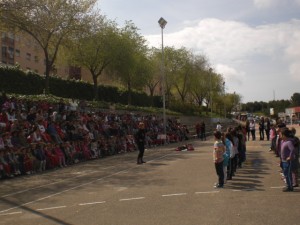 La celebració de la Diada de Sant Jordi va engegar a un quart d’onze del matí amb el primer acte del dia consistent en un concert de cançons de St. Jordi, cantades i coreografiades pels propis alumnes de primària, des de 1r a 6è, amb tot l’alumnat del propi centre, parvulets inclosos, com a públic d’honor.