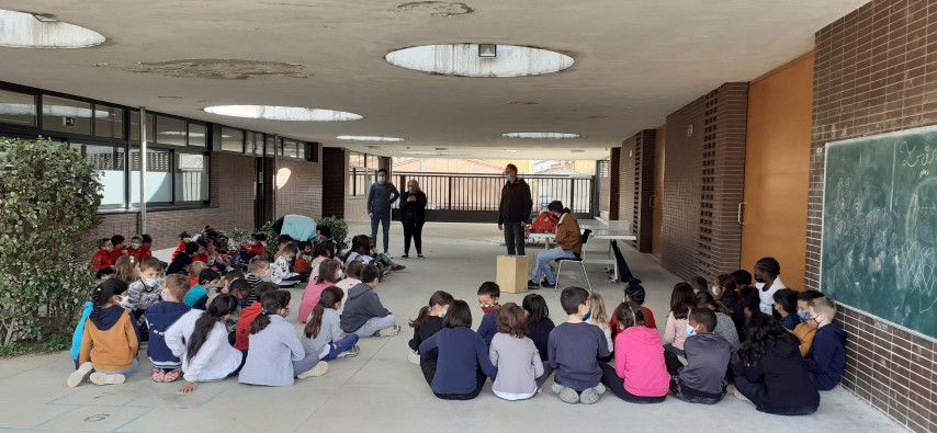 El dilluns al matí vam sortir tots els alumnes de Cicle Inicial i vam anar a caminar per sota la Muntanya Pelada i fins les Fonts de Sant Roc. Allà vam esmorzar, jugar i després vam tenir una sorpresa! Vam poder menjar un llagurt gelat!! mmmmmm