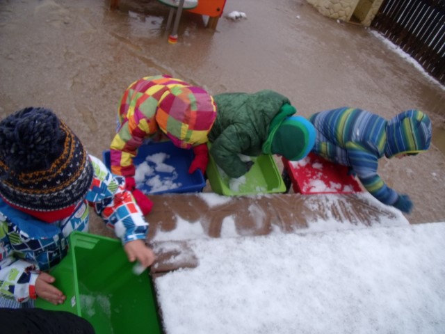 Amb la nevada juguem, recollim neu i experimentem amb la neu a dins l’aula.