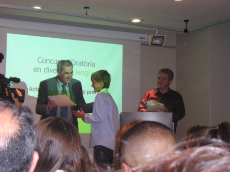 Ahir dilluns 6 d’octubre va tenir lloc el lliurament de premis del Concurs d’Oratòria, en diverses llengües: Orator . S’ hi varen presentar més de 8o escoles d’arreu de Catalunya i la nostra ha estat una de les premiades . En Miquel Artigas Besa , un dels nostres alumnes de 6è de primària va ser guanyador d’un premi que consisteix en unes colònies d’immersió lingüística . En l’emotiu acte de lliurament de premis d’ahir , en Miquel va rebre un diploma de mans del Conseller d’Educació , Ernest Maragall , i el reconeixement de tota la comunitat educativa pel seu bon nivell en oratòria en català , castellà i anglès . Des de l’escola volem felicitar-lo i fer-vos saber que ens omple d’orgull que un alumne del nostre centre hagi obtingut aquest premi .