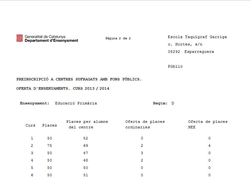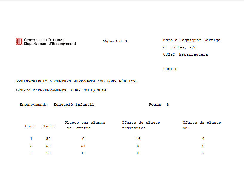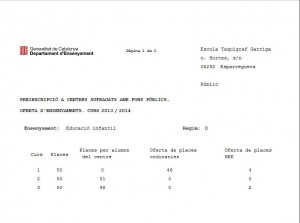 el divendres es va publicar l’oferta definitiva de places per la preinscripció del curs 2013-2014.