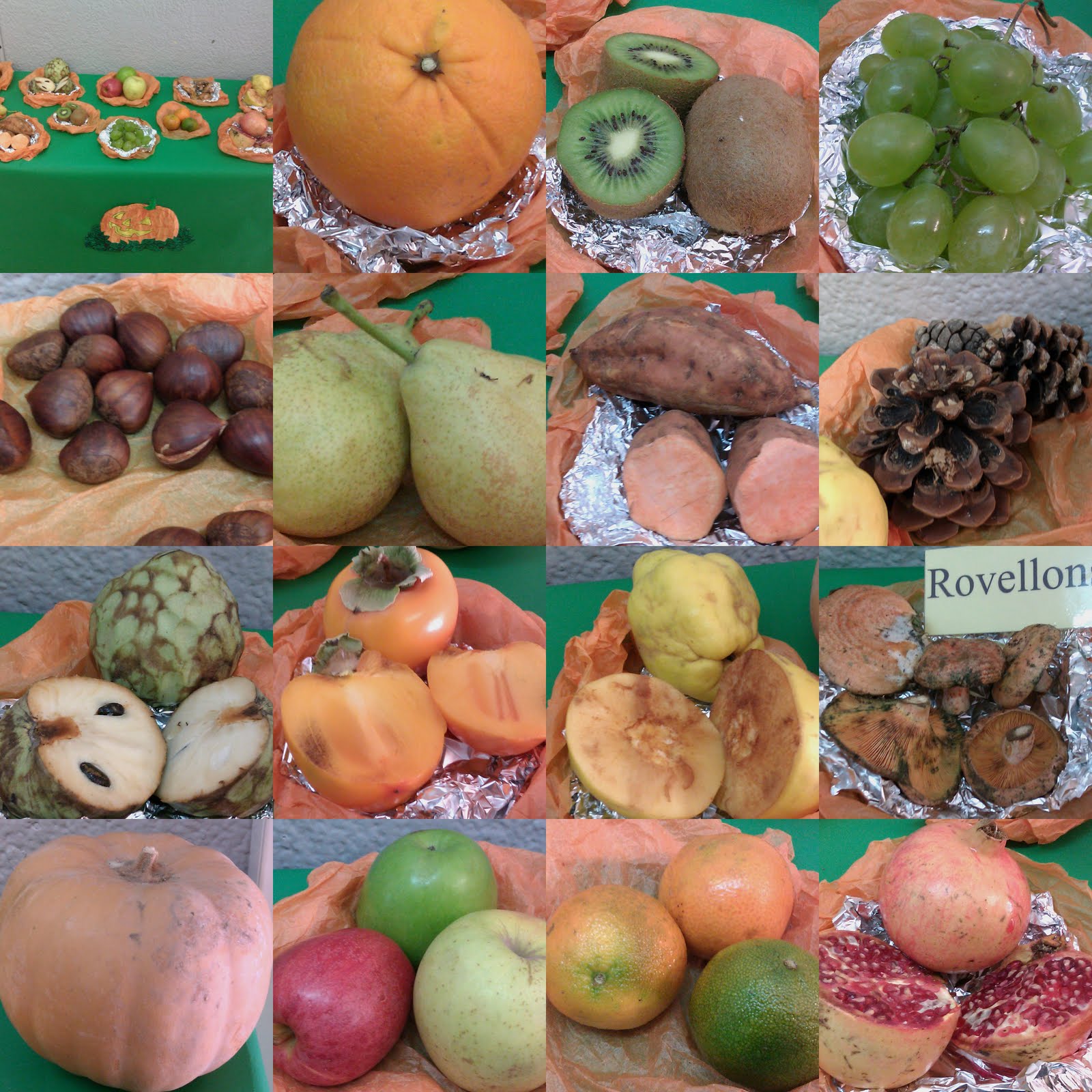 Exposició de fruits. Exposem els fruits de la tardor a l’entrada de l’escola juntament amb un breu comentari/fitxa de cadascun d’ells. Fem la recerca a l’ordinador treballant en grups de manera que cada grup estudiï 4 o 5 fruits.