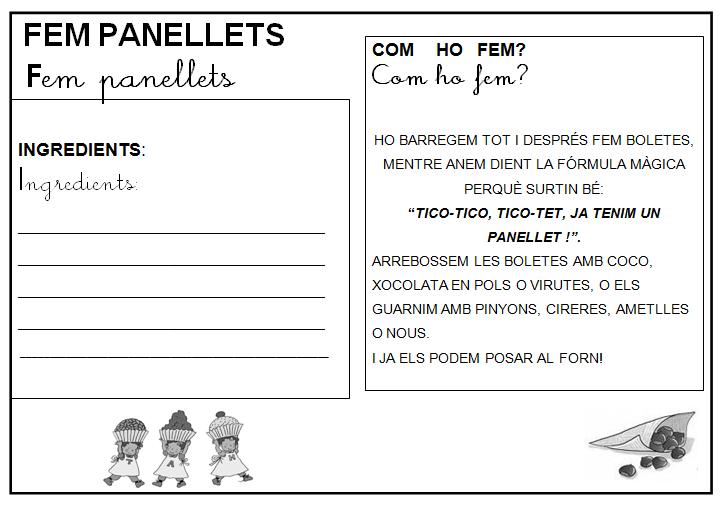 Fem panellets! Farem panellets a l’escola. Necessitarem els ingredients i els estris que hem posat a la recepta. LA RECEPTA.