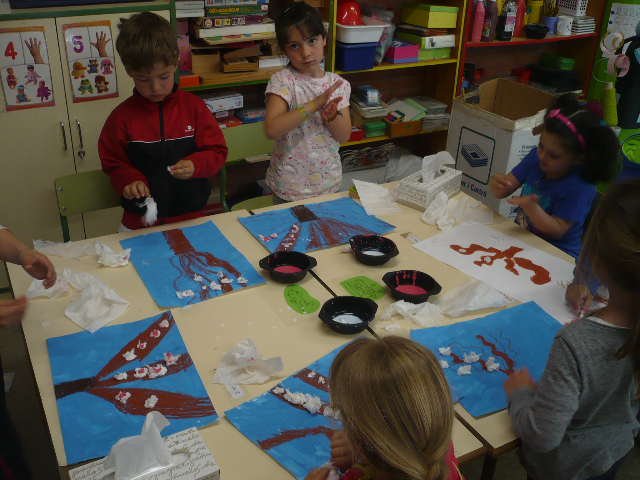 Des de fa ja alguns dies, els avions hem començat a treballar algunes de les obres del pintor Vincent Van Gogh. Hem fet, per exemple, un autoretrat ja que aquest pintor sovint en feia. També ens estem trobant amb els padrins i les padrines i estem realitzant una altra obra conjuntament ( una que més endavant podreu veure perquè encara no la tenim enllestida…) i ahir vam acabar de fer un quadre que ve molt al cas amb l’arribada de la primavera!