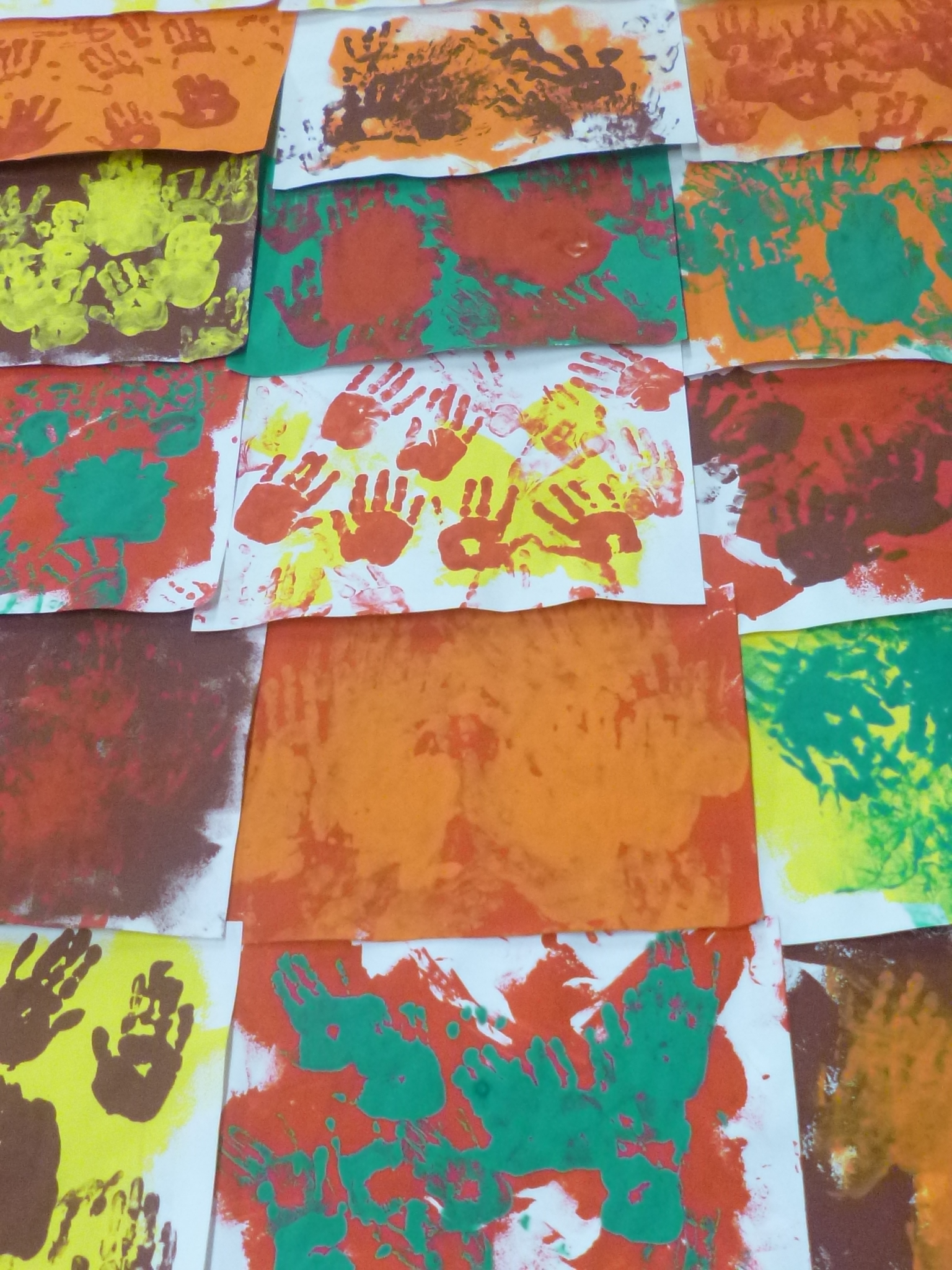 Diu Leyre que l´han fet amb les mans plenes de pintura i les han marcat al paper ….. ha quedat molt chulo !!!!!!