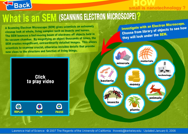 “Posa ordre!“L’objectiu d’aquest joc és ordenar les targetes segon la mida real de les imatges. Convindria que els infants fessin un primer intent solament mirant les imatges, per després comprovar si la distribució és correcte a partir de la mesura (en nanòmetres) que apareix darrere de cada targeta. Podeu trobar més imatges aquí |
