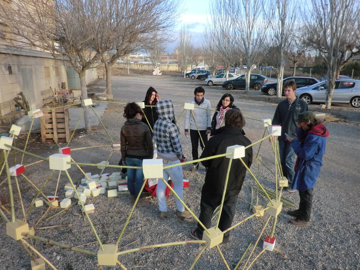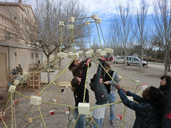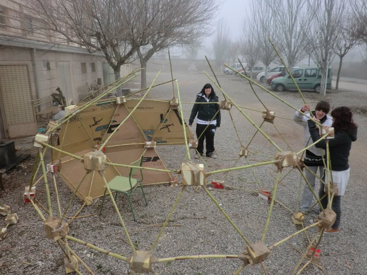 El projecte artistic vol ser una construcció geodèsica feta amb materials naturals com cordes, cartró, paper kraft, llavors i canyes. /The artistic project will be a geodesical construction made with natural materials as cans, cardboard, kraft paper, seeds and ropes.
