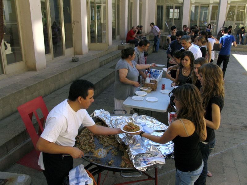 A l’ hora de dinar es va fer una paella gegant per a tots els alumnes i professors que van anar a la festa ./ At lunch time, we cooked a big paella for all the students and teachers in the party.