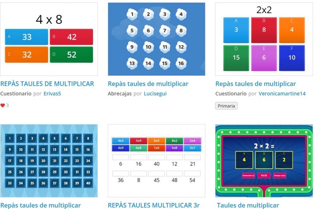 ACTIVITATS PER PRACTICAR LES TAULES DE MULTIPLICAR Aquí teniu moltes activitats per repassar les taules.