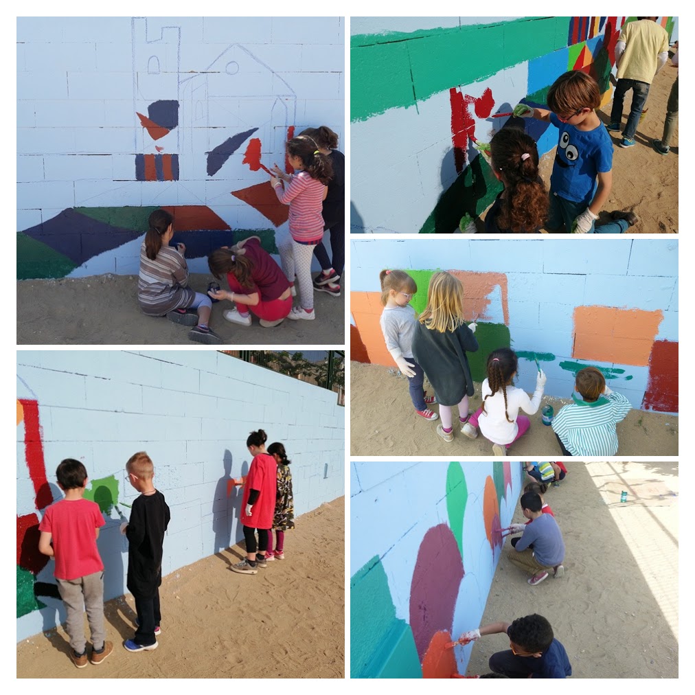 Una de les activitats que fem per commemorar els 40 anys de l’escola és pintar la paret del pati.