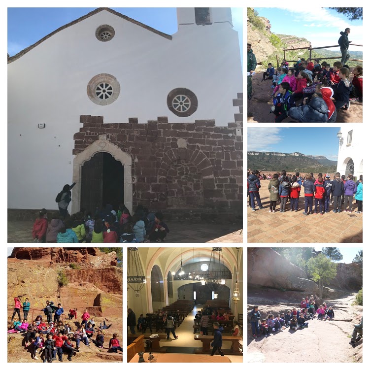 A la paret del pati, unes senyoretes de l’escola van fer uns dibuixos molt bonics relacionats amb el poble de Mont-roig (ermita, St. Ramon, muntanyes…) i tots els nens hem anat a pintar-ne una part.
