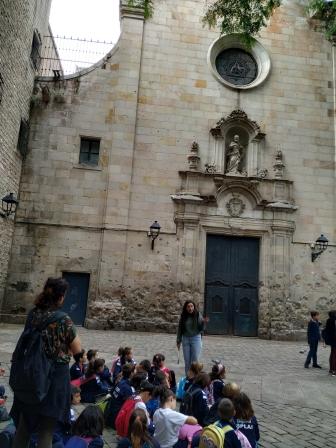 Vam esmorzar a la Plaça Catalunya i allí vam conèixer les nostres guies, la Laia i la Sònia. Tot seguit, vam baixar per les Rambles on vam veure la Font de Canaletes, el rellotge del Teatre Poliorama, el mercat de la Boqueria, la Basílica de Santa Maria del Pi, la Casa dels Paraigües, el mosaic de Miró del terra i el Liceu. Vam continuar baixant per les Rambles fins arribar a la Plaça Reial, on ens van explicar la llegenda dels cascos de Mercuri d’uns fanals.