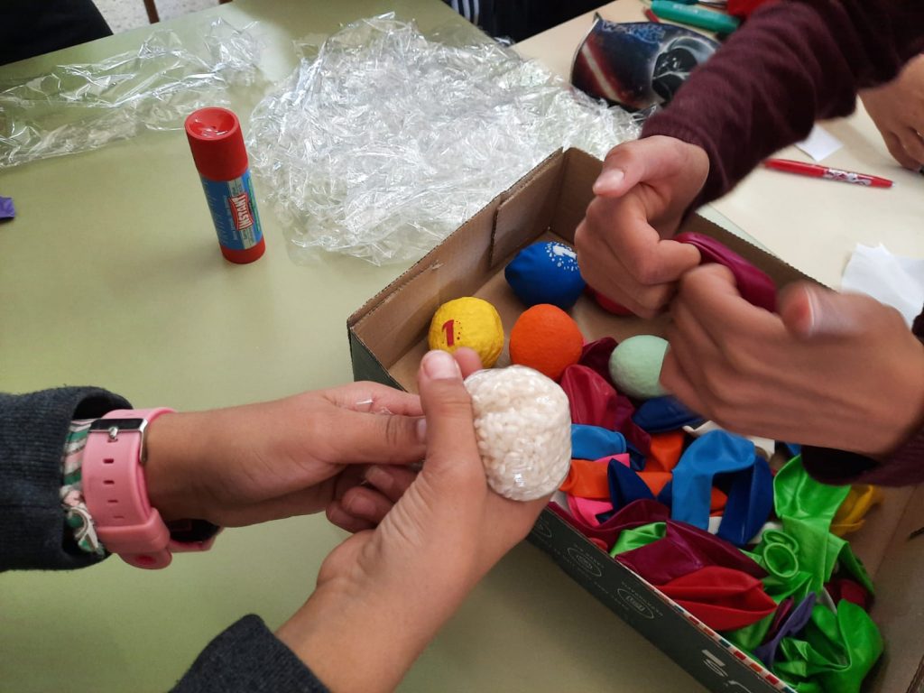 Hem treballat les matemàtiques i la llengua en grups cooperatius tot relacionant les activitats amb l’elaboració de les boles de malabars.
