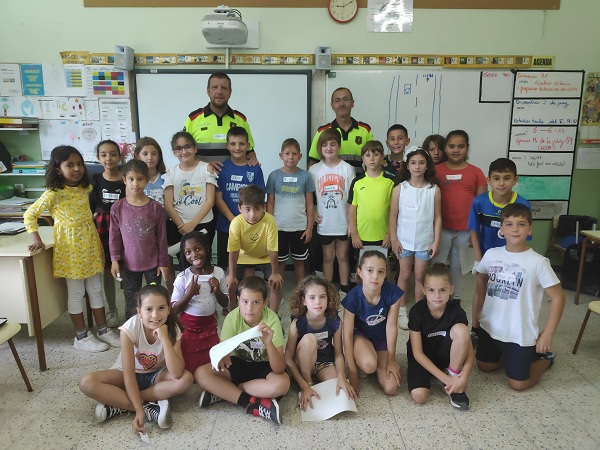 Els dies 5 i 6 de juny els nens i nenes de Cicle Mitjà hem rebut la visita dels Mossos d’Esquadra. Als de 3r, en Xavier i en Josep ens han explicat com hem de comportar-nos quan anem en bicicleta pel poble. Ens han remarcat que és molt important portar el casc sempre. Fer cas dels senyals de trànsit i anar per la calçada. A continuació podeu veure alguna de les imatges del dia.