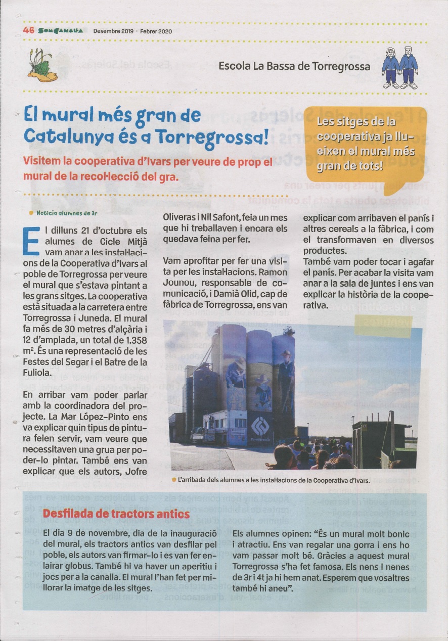 El passat dilluns dia 21 els alumnes de cicle mitjà vam anar a visitar les instal·lacions de la Cooperativa d’Ivars que hi ha a Torregrossa. Vam poder veure també el mural que pinten a les sitges.