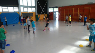 Iniciàvem l’ambient fent una trobada en comú on presentàvem la sessió. Llavors a partir dels interessos i idees prèvies que portàvem, començàvem a crear nous jocs com “l’handbol terra, el hoquei xinés, el volei terra…” I com aquest trimestre a EF hem realitzat jocs preesportius, els hi hem pogut ensenyar als nostres companys i companyes.