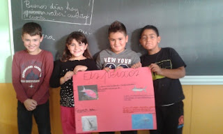 La segona activitat va ser anar a visitar la Biblioteca, ens van ensenyar tota la biblioteca, fins i tot la part de dalt on van a estudiar els grans…. Després vam participar en un concurs de preguntes i respostes i em sembla que les vam encertar totes, és clar. Finalment la Montse Cascante que és il·lustradora i a més a més és d’Olesa, ens va ensenyar algunes de les seves il·lustracions, però el més bonic és que ens va dibuixar un conte preciós sobre un circ, un pallasso i un detectiu. Moltíssimes gràcies Montse pels dibuixos que ens vas regalar, els penjarem a l’escola perquè tothom els pugui gaudir.