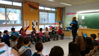 Primer va venir la Policia Local d’Olesa a fer-nos unes classes d’Educació Viària, molt interessant tot el que ens van explicar: cinturó de seguretat, com hem d’anar en cotxe, com és d’important el casc i moltíssimes altres coses i el millor de tot és que hem quedat per un altre dia, sí sí, anirem a fer pràctiques amb BICICLETES!!!!!!!! Yujuuuu ho estem desitjant.