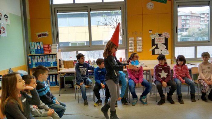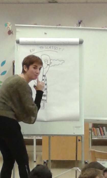 La segona activitat va ser anar a visitar la Biblioteca, ens van ensenyar tota la biblioteca, fins i tot la part de dalt on van a estudiar els grans…. Després vam participar en un concurs de preguntes i respostes i em sembla que les vam encertar totes, és clar. Finalment la Montse Cascante que és il·lustradora i a més a més és d’Olesa, ens va ensenyar algunes de les seves il·lustracions, però el més bonic és que ens va dibuixar un conte preciós sobre un circ, un pallasso i un detectiu. Moltíssimes gràcies Montse pels dibuixos que ens vas regalar, els penjarem a l’escola perquè tothom els pugui gaudir.