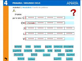 També aquí (més activitats d’Anaya) o aquí (activitat més complexa amb autocorrecció)