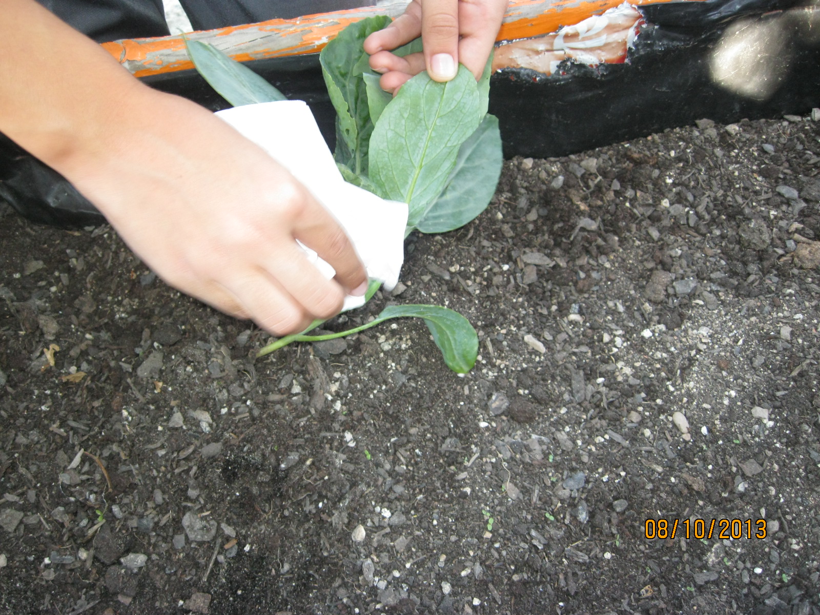 Avui hem descobert que al nostre palot hi ha uns cuquets que se’ns mengen les fulles dels bròquils. Hem netejat les fulles traient els ous i tots els cucs que hem vist. Ara haurem d’estar atents!