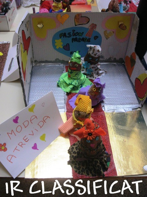 ANNA I JANA: Vam tenir la idea de fer una passarel·la de moda perquè a les dues ens agrada molt tot el relacionat amb la moda. Així que cadascuna va portar uns materials i se’ns van anar acudint idees per a la decoració i els vestits. Vam construir la passarel·la a mesura que anàvem tenint idees.