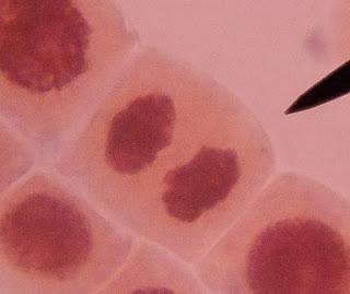 Avui amb els alumnes de quart hem fet una pràctica per a observar les diferents fases de la mitosi. Hem deixat que una ceba amb aigua li creixessin les arrels. Després hem fet una preparació amb Orceïna per tal de visualitzar els cromosomes.