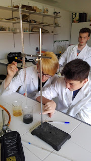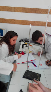 Pràctica de química: els alumnes de física i química han realitzat una pràctica de volumetria de neutralització. Barrejant àcid clorhídric o àcid sulfúric amb hidròxid de sodi utilitzant l’indicador de pH universal.