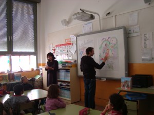 Dimecres 15 de maig van venir per segona vegada l’Anna i en Subi . Amb els contes que ens van deixar , nosaltres a classe els vam treballar. Tots vam fer un dibuix d’un personatge. En Subi ens ha dibuixat un mural i hem anat enganxant els nostres dibuixos i mireu que maco ens ha quedat!!!