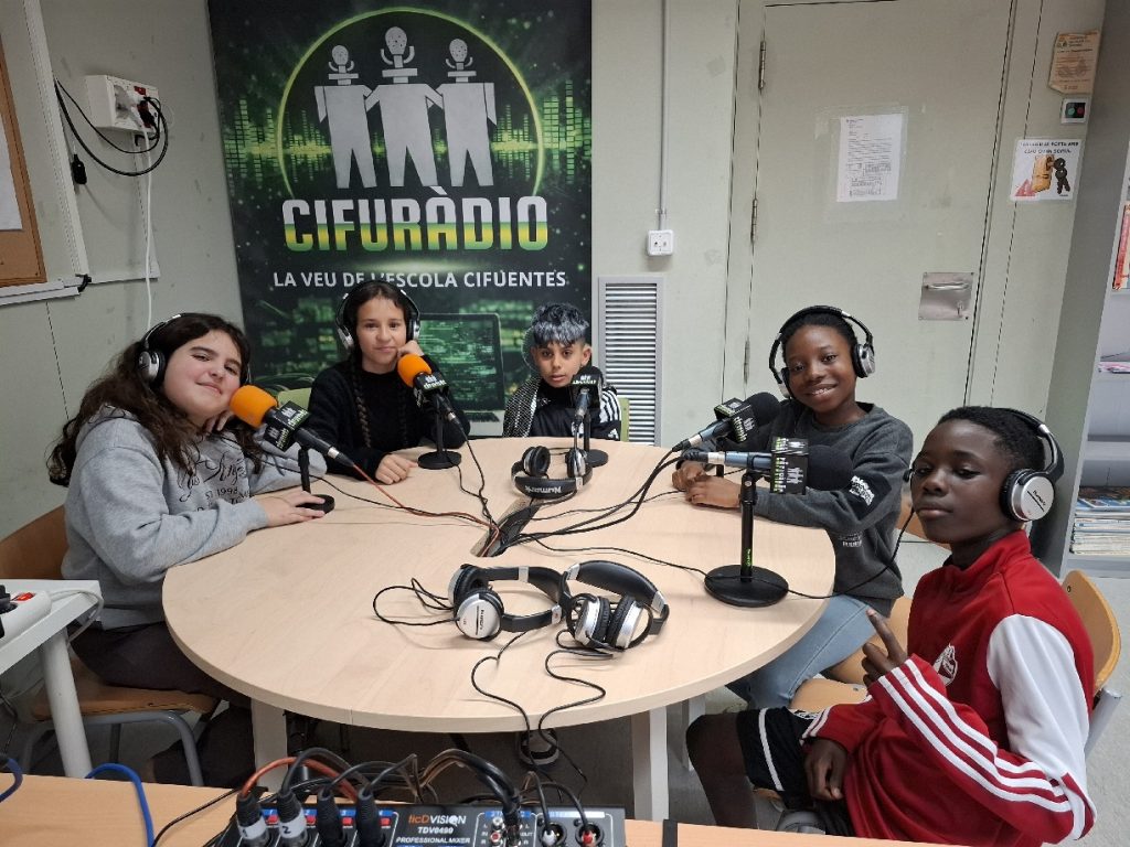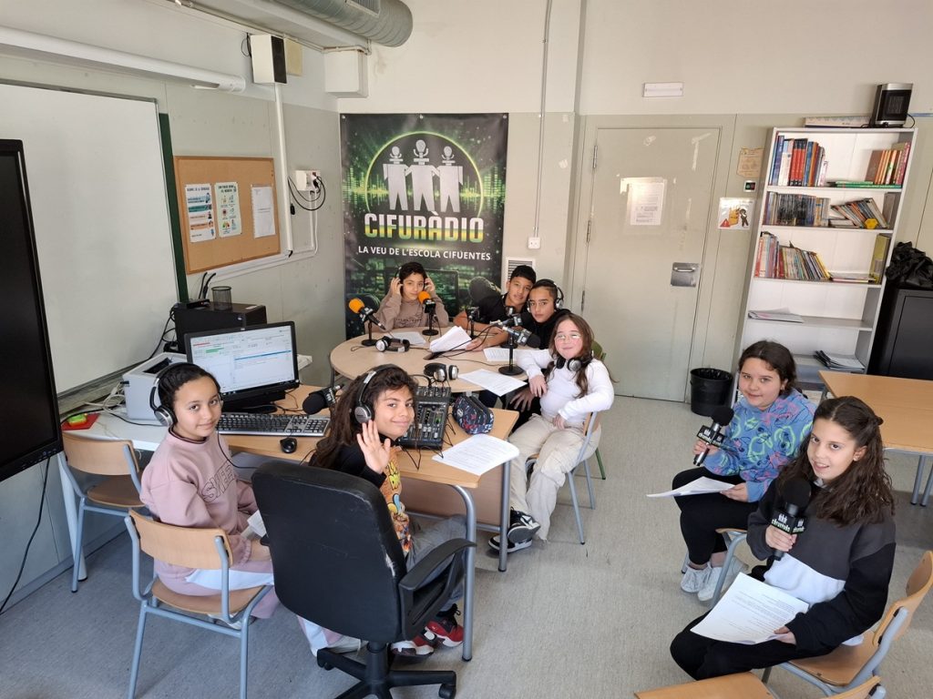 Coincidint amb la Jornada de Portes Obertes, l’estudi de la Cifuràdio ha obert al públic per fer un programa en directe per megafonia i internet dirigit per l’alumnat de sisè.