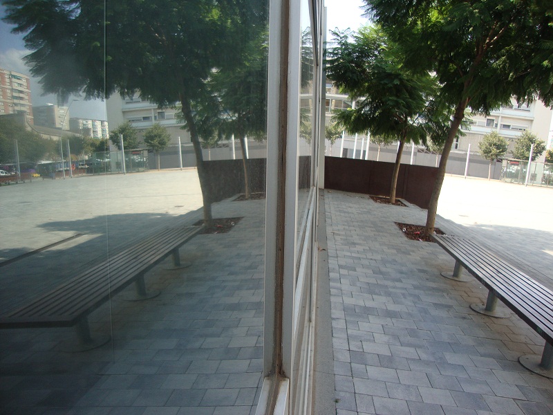 La vaig triar perquè em va agradar molt l’efecte que tenia del reflexe al vidre de la Biblioteca a l’exterior, tambè per l’efecte de simetria del vidre  què dona més sensació de profunditat de camp de la què té.