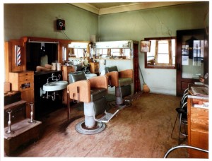 Sembla una fotografia d’un barber o d’una perruqueria perquè hi ha productes per la barba com aquell pot que sembla escuma per afaitar-se. A la paret hi ha una esquerda al costat de la porta i, una mica a la dreta, una escombra. L’estança sembla antiga. A la paret de dalt hi ha un aparell que sembla un telèfon i, en darrer lloc, hi ha un quadre al costat del mirall.